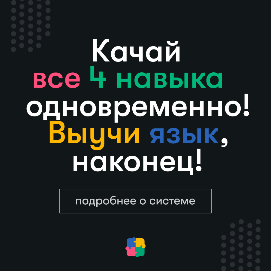 4 языковых навыка как пазлы взаимопроникают друг в друга. Их взаимоподдержка и развитие приводят ученика к успеху.